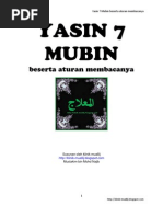 12, 17, 24, 47, 60, 69, 77 4. 7 mubin dalam surah yasin 1. 7 mubin sebenarnya merupakan 7 ayat yang berada di dalam surah yasin dan diakhirnya terdapat perkataan mubin yang bermaksud jelas atau nyata di dalam bahasa arab. Surat yasin merupakan surah yang ke 36 didalam mushaf kitab suci al quran. Kaedah membaca yasin 7 mubin ini bermaksud kita membaca yasin sehingga bertemu ayat mubin pertama, kita harus ulang balik mula dari yassin, kemudian terus membacanya dan apabila bertemu mubin pertama, teruskan sehingga bertemu mubin ke 2, kena mula balik baca dari yasin. Ada yasin tunggal (biasa), yasin wirid (untuk rezeki) dan ada yang membaca yasin 7 mubin untuk sesuatu hajat. Melindungi diri dari difitnah atau dizalimi manusia. Surah ini terdiri dari 83 ayat. Yasin ada beberapa kaedah dan cara pembacaannya, bergantung kepada tujuan khususnya. Peristiwa dunia, mitos & sejarah; Yasin 7 mubin ini dibaca untuk mendapatkan semula barangan berharga yang telah dicuri atau hilang. Yasin ada beberapa kaedah dan cara pembacaannya, bergantung kepada tujuan khususnya. 7 dari 119 kalimah itu terdapat daam surah yasin (36) 3.